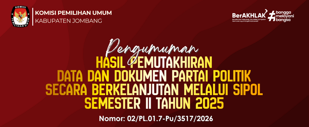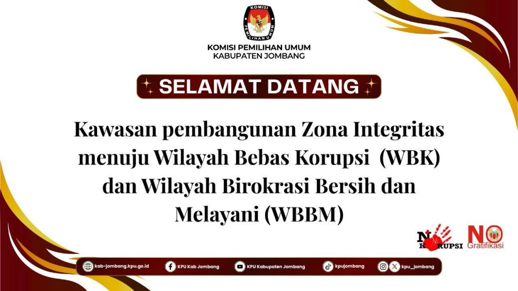 Kami atas nama lembaga KPU Kabupaten Jombang mohon dukungan, bantuan, dan kerjasama dari seluruh jajaran Stakeholder di Kabupaten Jombang serta kepada seluruh masyarakat Kabupaten Jombang dalam rangka menyukseskan Pembangunan Zona Integritas menuju WBK dan WBBM di Lingkungan KPU Kabupaten Jombang.