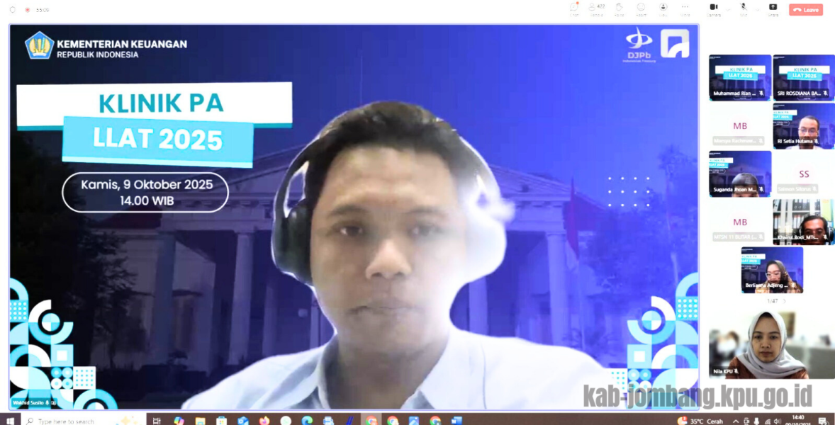 Jombang, kab-jombang.kpu.go.id – Komisi Pemilihan Umum (KPU) Kabupaten Jombang mengikuti kegiatan Klinik Langkah-Langkah Akhir Tahun (LLAT) 2025 yang diselenggarakan oleh Direktorat Pelaksanaan Anggaran, Direktorat Jenderal Perbendaharaan (DJPb) Kementerian Keuangan RI, pada Kamis (9/10/2025) secara daring.