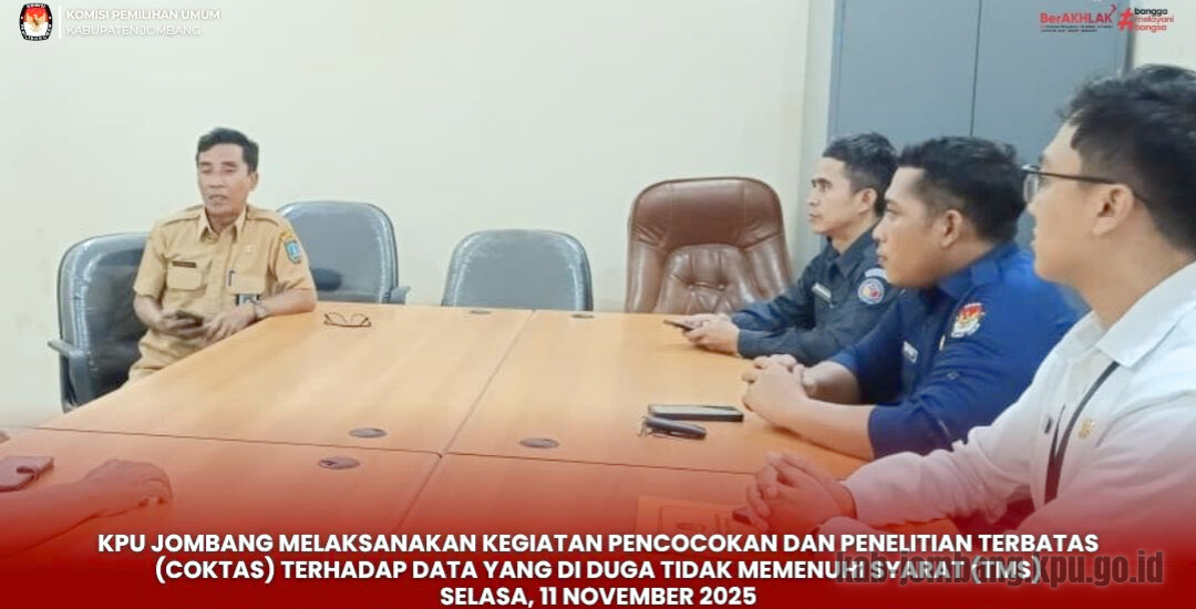 Jombang, kab-jombang.kpu.go.id – KPU Jombang melaksanakan Kegiatan Pencocokan dan Penelitian Terbatas (Coktas) terhadap data yang diduga Tidak Memenuhi Syarat (TMS) Pemilih dalam hasil Sinkronisasi Data Kemendagri Semester II Tahun 2025
