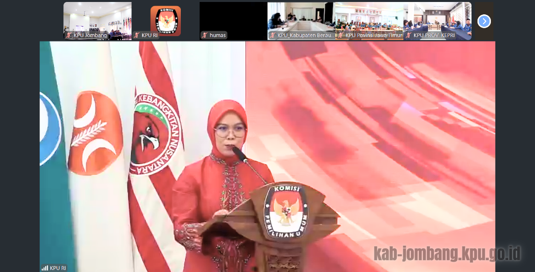 Jombang, kab-jombang.kpu.go.id – Komisi Pemilihan Umum Kabupaten Jombang menghadiri kegiatan Dialog Publik dalam rangka Peringatan Hari Ibu ke-97 Tahun 2025 di Gedung Pertemuan Husni Kamil Manik. Dialog Publik dilaksanakan oleh KPU kali ini mengusung tema “Perempuan Penggerak Perubahan: Perempuan Memimpin, Demokrasi Berkembang” yang digelar secara daring melalui zoom meeting pada Senin, 22 Desember 2025.