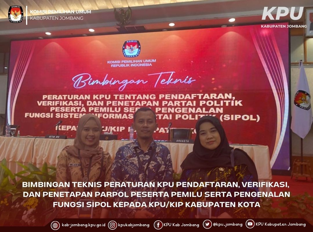 KPU Jombang Ikuti Bimbingan Teknis Peraturan KPU Tentang Pendaftaran, Verifikasi dan Penetapan Partai Politik Peserta Pemilu Serta Pengenalan Fungsi Sistem Informasi Partai Politik