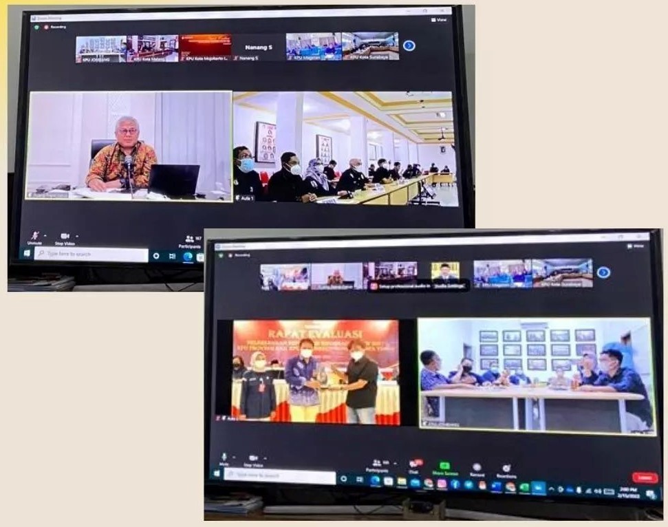 Jombang, kab-jombang.kpu.go.id – KPU Jombang terpilih sebagai terbaik pertama capaian pelaksanaan reformasi birokrasi Tingkat KPU Se Jawa Timur pada acara rapat evaluasi pelaksanaan reformasi birokrasi tahun 2021 bersama dengan 38 KPU Kabupaten/ Kota se-Jawa Timur dan KPU RI secara hybrid, Selasa (15/2) pukul 13.00 WIB.