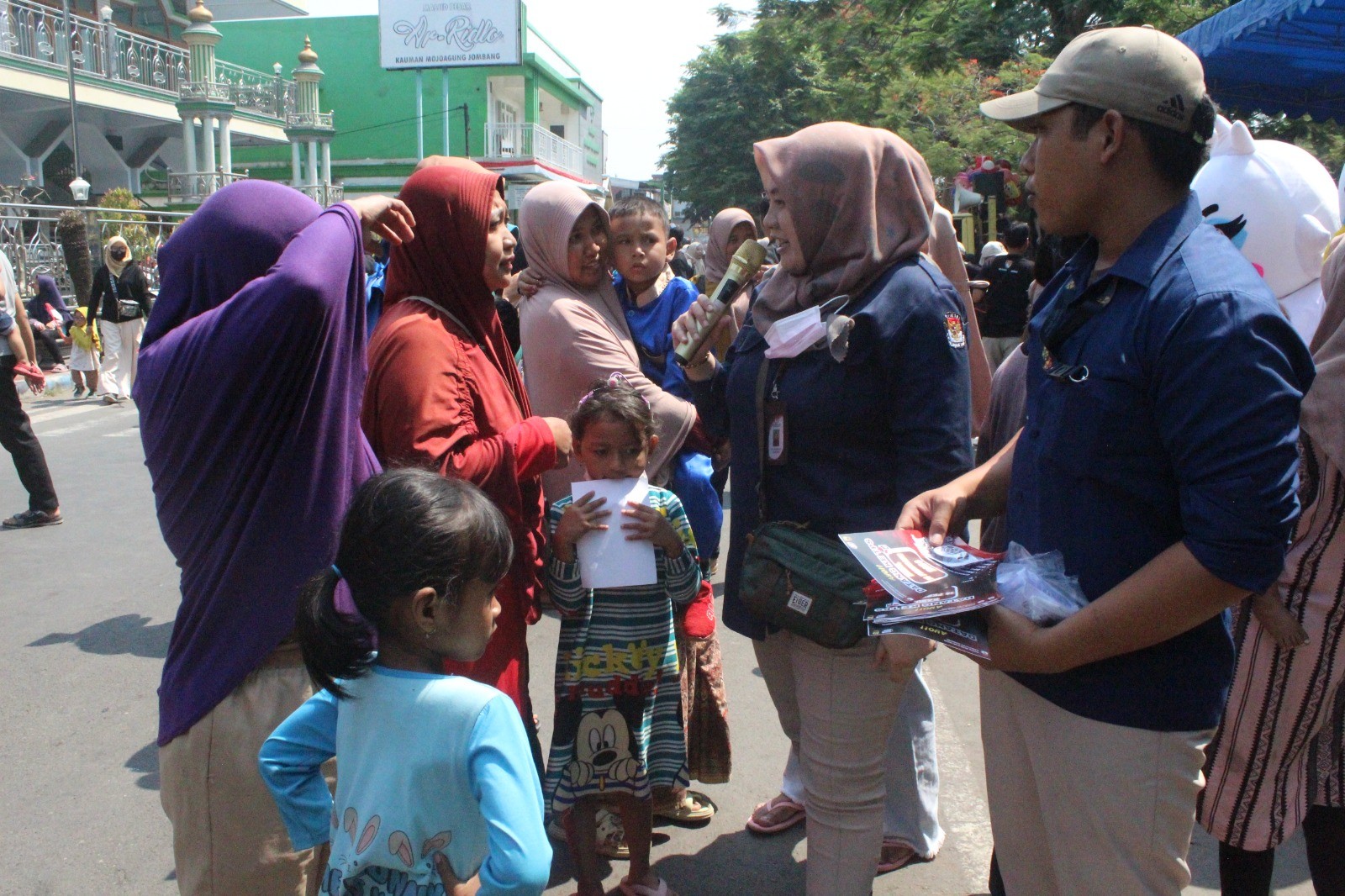 Jombang, kab-jombang.kpu.go.id Rangkaian kegiatan Kirab Pemilu 2024 di Kabupaten Jombang pada hari ke-5, Sabtu (9/9/2023) dilaksanakan KPU Kabupaten Jombang daerah pemilihan 3 yaitu Kecamatan Mojoagung, Wonosalam, Bareng, dan Mojowarno. Kecamatan pertama yang dilewati Jalur Kirab ini adalah Kecamatan Mojoagung dan sasaran utama adalah pedagang, pembeli, dan masyarakat yang tinggal di desa yang dilewati mobil kirab.