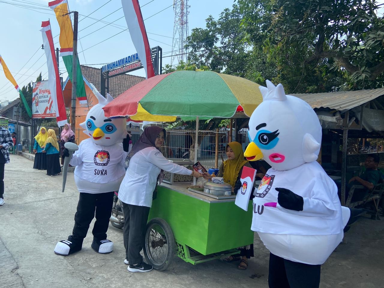 “Di lapangan Jogoroto terdapat kurang lebih 700 orang yang berjualan dan juga anak sekolah yang menyaksikan Kirab Pemilu. Guna menarik perhatian warga sekitar, saya bersama tim KPU Jombang berjalan di sepanjang Jalan dengan didampingi Maskot Sura-Sulu untuk membagikan brosur dan juga gantungan kunci.” ujar Dina Triasmadji, Kasubbag Teknis dan Hupmas,