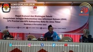kab-jombang.kpu.go.id- KPU Provinsi Jawa Timur menggelar Bimbingan Teknis dan evaluasi pengelolaan serta pengembangan Jaringan Dokumentasi dan Informasi Hukum (JDIH) bersama KPU Kabupaten/Kota Se Jawa Timur dengan peserta rapat Divisi Hukum dan Pengawasan dan Subkoordinator/Kasubbag Hukum yang dilaksankan di Aula Lantai 2 Kantor KPU Provinsi Jawa Timur Jl. Raya Tenggilis No. 1 Surabaya,Selasa (9/11). Bimtek dibuka oleh Ketua KPU Provinsi Jawa Timur Choirul Anam, diawali sambutan dari Sekretaris KPU Provinsi Jawa Timur Nanik Karsini mengingatkan kembali bahwa JDIH berfungsi sebagai sarana informasi hukum, sarana produk hukum dan media publikasi publik KPU RI, KPU Provinsi, dan KPU Kabupaten/Kota, dilanjutnya, pengarahan dari Nurul Amalia selaku Divisi Data dan Informasi KPU Provinsi Jatim, JDIH merupakan bagian dari Reformasi Birokrasi maka JDIH yang baik akan berkontribusi untuk perubahan Reformasi Birokrasi yang lebih baik pula. Sedangkan Miftahur Rozaq selaku Divisi Perencanaan dan Logistik KPU Provinsi Jatim menambahkan, JDIH diharapkan memiliki kontribusi riil untuk divisi lain terkait pertimbangan hukum dan rujukan hukumnya. Divisi Hukum dan Pengawasan KPU Provinsi Jawa Timur Arbayanto, mengatakan pentingnya JDIH karena menjadi etalase utama untuk melihat keterbukaan dan kualitas lembaga/instansi karena menampilkan wajah bagaimana lembaga dikelola dari aspek hukum, seluruh aktivitas harus ada landasan hukum, seluruh kebijakan, aktivitas, dan kegiatan harus ada pengaturannya. “ Keberadaan suatu dokumentasi dan perpustakaan hukum yang baik merupakan syarat mutlak untuk melakukan pembinaan hukum di Indonesia. Hal tersebut menjadi pemikiran mengenai pentingnya keberadaan suatu Jaringan Dokumentasi dan Informasi Hukum (JDIH),” Ujar Arbayanto. Selanjutnya materi utama terkait Evaluasi Pengelolaan JDIH KPU Provinsi dan KPU Kabupaten/Kota dengan narasumber dari KPU RI Deny Chryswanto Fungsional Ahli Madya Perancang Perundang-undangan yang dilakukan secara daring (via zoom meeting) dan dimoderatori oleh Kabag Hukum dan Teknis Provinsi Jatim, Yulyani Dewi. Sedangkan Wiratmoko selaku subkoordinator Hukum KPU Provinsi Jawa Timur, menjelaskan bahwa ada tiga tahap pengelolaan JDIH yaitu pengelolaan dokumen, pengunggahan dan publikasi informasi. Selanjutnya peserta diminta langsung mempraktekan langkah-langkah pengunggahan dan penyusunan abstrak peraturan/keputusan ke dalam JDIH. Dari KPU Jombang diwakili Ayatullah Khumaini. S.Sos Divisi Hukum dan Pengawasan dan Alfin Staf Sub bagian Hukum KPU Kabupaten Jombang. (ag/hupmas)