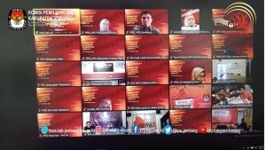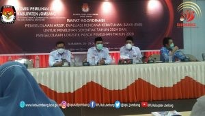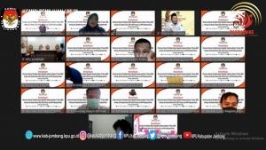 kab-jombang.kpu.go.id- KPU Kabupaten Jombang menjadi narasumber pendidikan politik sayap pemuda parpol yang diadakan Badan Kesatuan Bangsa dan Politik (Bakesbangpol) bagi garda pemuda parpol atau kaum milenial di gedung KORPRI Jombang dengan protocol Kesehatan yang keta, Kamis (28/10). Kegiatan pelatihan Pendidikan Politik dibuka Bupati Jombang Mundjidah Wahab. Turut hadir dalam kegiatan Ketua DPRD Jombang Mas’ud Zuremi, Johan Fitriadi Kabid Budaya Politik Bakesbangpol Jawa Timur, serta Rita Darmawati, Komisioner KPU Jombang.