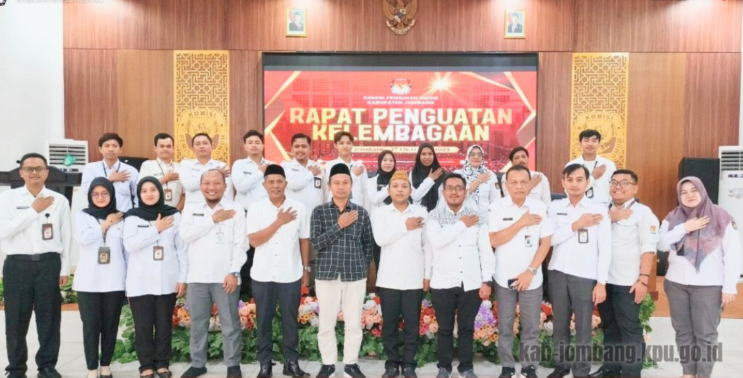 Jombang, kab-jombang.kpu.go.id – Komisi Pemilihan Umum Kabupaten Jombang melaksanakan kegiatan Rapat Penguatan Kelembagaan yang dilaksanakan pada Senin (27/10/2025) yang bertempat di Gedung Pertemuan Husni Kamil Manik KPU Kabupaten Jombang.