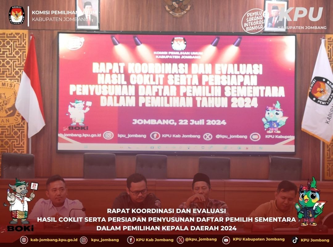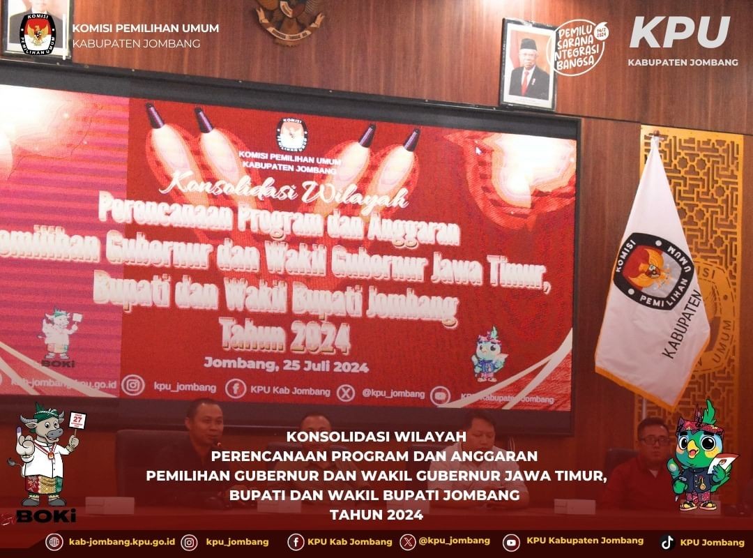 Jombang, kab-jombang.kpu.go.id Komisi Pemilihan Umum (KPU) Kabupaten Jombang gelar Konsolidasi Wilayah Perencanaan Program dan Anggaran untuk Pemilihan Gubernur dan Wakil Gubernur Jawa Timur serta Bupati dan Wakil Bupati Jombang tahun 2024 pada hari Kamis, 25 Juli 2024. Rapat kerja ini dihadiri oleh Ketua Bawaslu Jombang, Ketua beserta Anggota Panitia Pemilihan Kecamatan (PPK) se-Kabupaten Jombang. Ketua KPU Jombang, Ahmad Udi Masjkur, menyampaikan bahwa tujuan utama dari konsolidasi ini adalah untuk memastikan sinkronisasi dan koordinasi yang efektif di semua wilayah kerja komisioner. "Kami ingin memastikan bahwa semua pihak bekerja sesuai dengan peraturan perundang-undangan yang berlaku, sehingga proses pemilihan dapat berjalan dengan lancar dan transparan," ujar Udi. Dalam rapat kerja tersebut, dibahas berbagai aspek penting terkait perencanaan program dan alokasi anggaran, serta tantangan yang mungkin dihadapi dalam pelaksanaan Pemilihan Serentak 2024. Partisipasi aktif dari seluruh anggota PPK se Kabupaten Jombang diharapkan dapat memberikan kontribusi positif dalam merumuskan strategi yang tepat. Dengan langkah ini, KPU Jombang optimis bahwa persiapan Pemilihan Serentak 2024 akan lebih matang dan terstruktur, mendukung terciptanya pemilihan yang demokratis dan berintegritas di Kabupaten Jombang.(nl/hupmas)