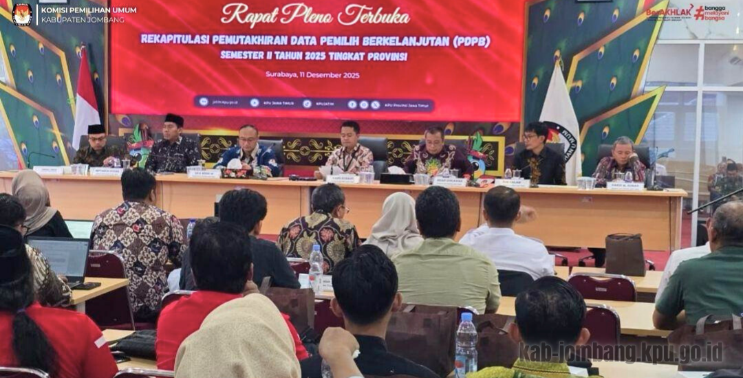 Jombang, kab-jombang.kpu.go.id – KPU Kabupaten Jombang mengikuti Rapat Pleno Penetapan Rekapitulasi Pemutakhiran Data Pemilih Berkelanjutan (PDPB) Tingkat Nasional Semester II Tahun 2025 secara daring melalui Zoom Meeting, Rabu, 17 Desember 2025.