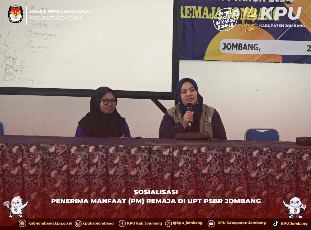 Sosialisasi dibuka Ketua KPU Kabupaten Jombang, Abdul Wadud Burhan Abadi yang dilanjutkan penyampaian materi oleh anggota KPU Kabupaten Jombang Rita Darmawati. Dalam paparannya, Rita yang merupakan Koordinator Divisi Sosialisasi Pendidikan Pemilih Partisipasi Masyarakat dan SDM KPU Kabupaten Jombang, menyampaikan tahapan penyelenggaraan pemilu, jumlah partai peserta pemilu, nomor urut dan nama partai politik peserta Pemilu 2024. Selain itu, ia juga menyampaikan terkait hak kaum disabilitas yang dijamin oleh Undang-undang dalam memberikan hak suaranya pada Pemilu 2024.
