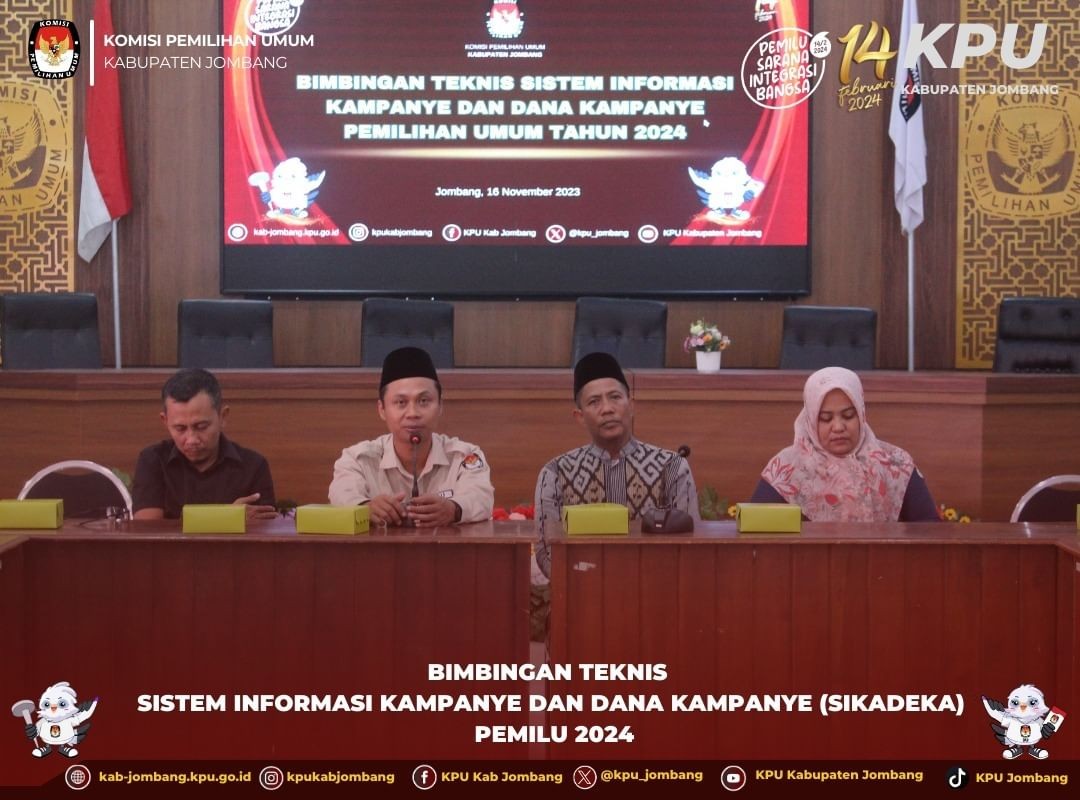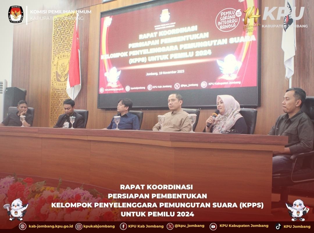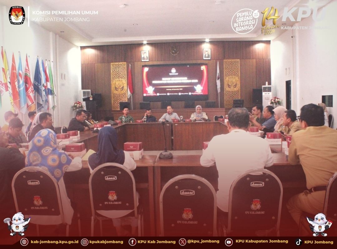 Jombang, kab-jombang.kpu.go.id Komisi Pemilihan Umum (KPU) Kabupaten Jombang gelar Rapat Koordinasi Persiapan Kampanye Pemilu 2024, Senin (20/11/2023) di Gedung Husni Kamil Manik, Jl.KH Romly Tamim, Jogoroto, Jombang.