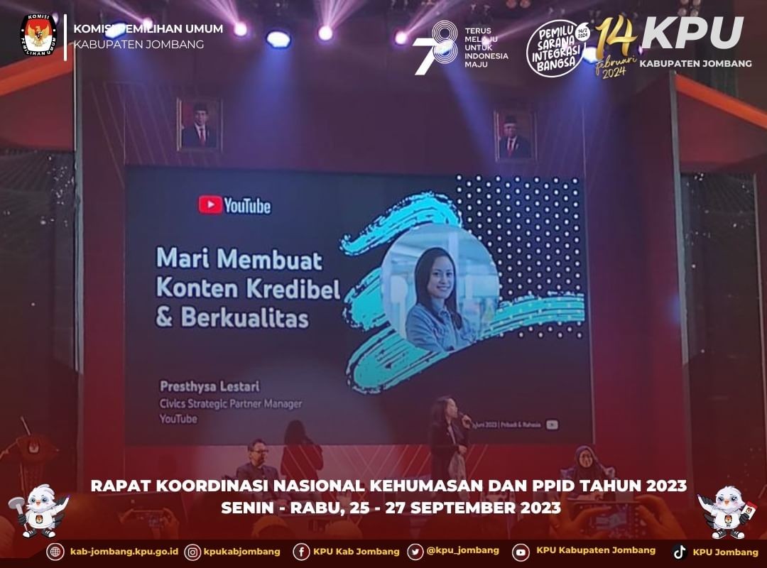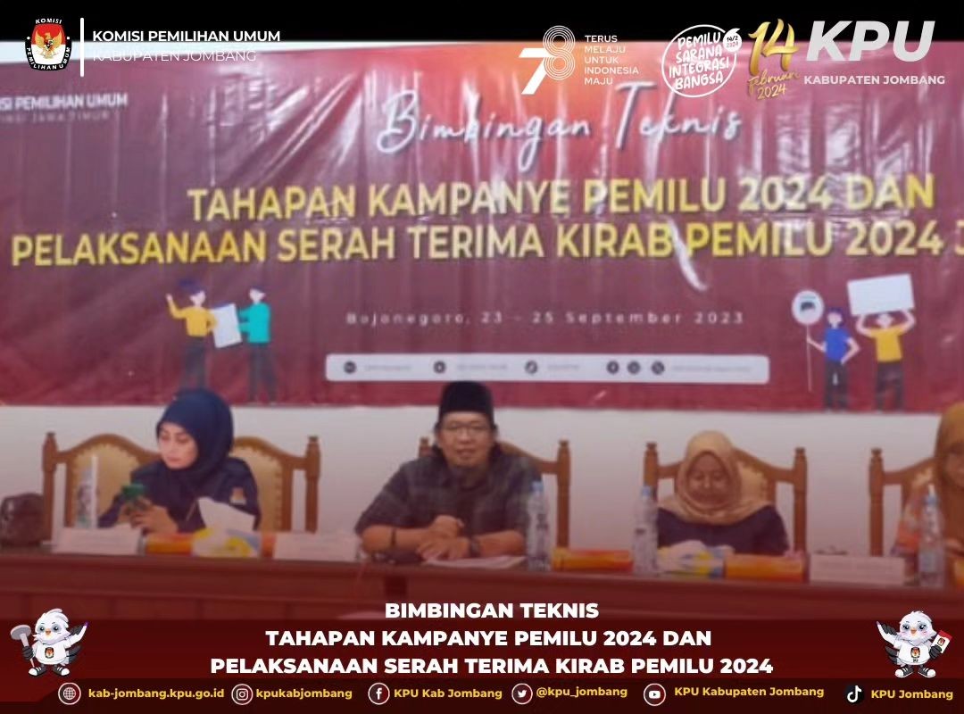 Jombang, kab-jombang.kpu.go.id Komisi Pemilihan Umum Kabupaten Jombang gelar Sosialisasi dan Internalisasi Kampanye dan Dana Kampanye pada hari Jumat (29/9/2023) di Gedung Husni Kamil Manik. Acara dimulai pukul 09.00-11.30 WIB.