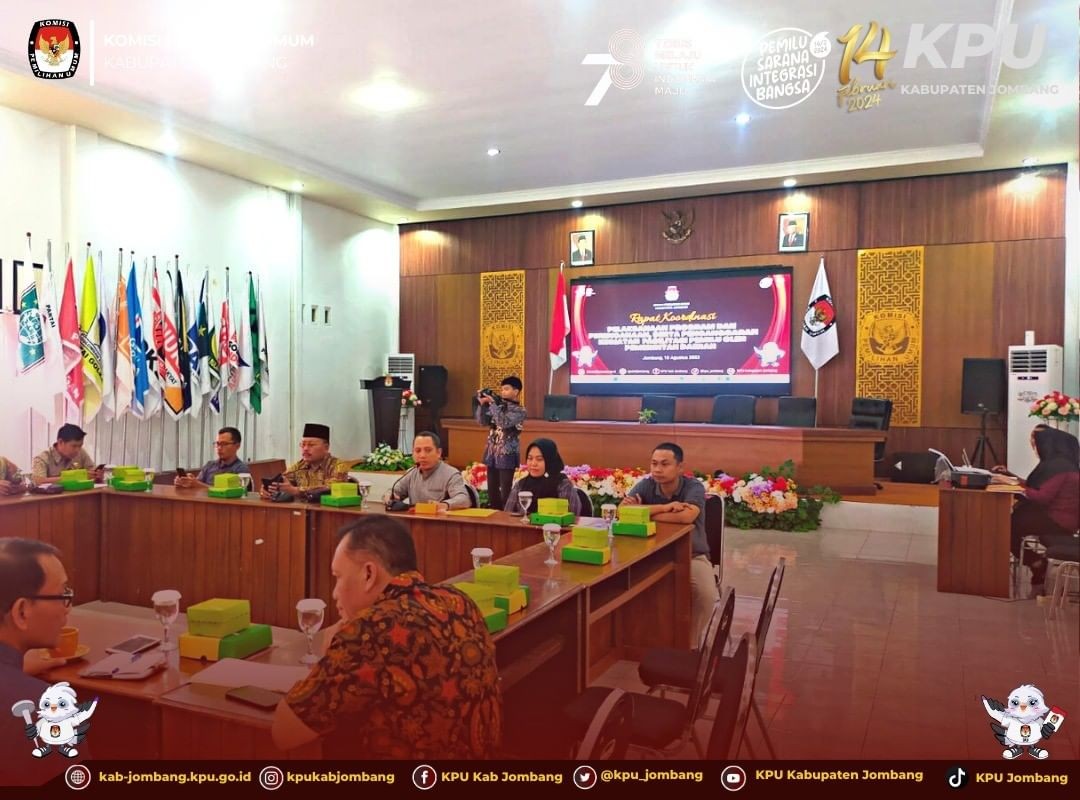 Jombang, kab-jombang.kpu.go.id Komisi Pemilihan Umum (KPU) Kabupaten Jombang gelar Rapat Koordinasi Pelaksanaan Program dan Penganggaran Kegiatan Fasilitasi Pemilu oleh Pemerintah Daerah pada hari Jumat (18/8/2023) pukul 09.00 hingga selesai.