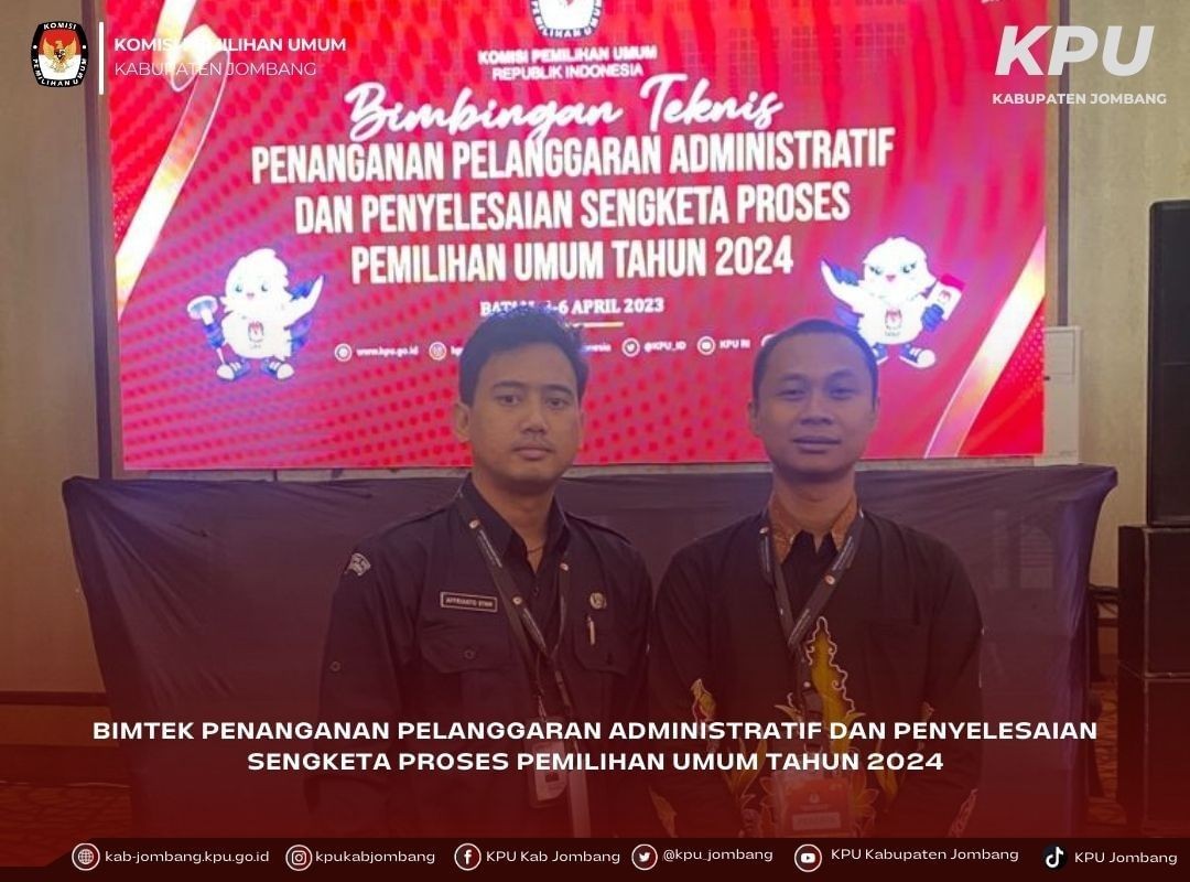 Jombang, kab-jombang.kpu.go.id – Komisi Pemilihan Umum (KPU) Kabupaten Jombang mengikuti Bimbingan Teknis (Bimtek) Penanganan Pelanggaran Administrasi dan Sengketa Proses Pemilu yang diselenggarakan oleh KPU. Kegiatan yang dilaksanakan di Batam dihadiri oleh Ketua KPU RI, Hasyim Asy’ari, Divisi Hukum dan Pengawasan, Mochammad Afifuddin, Deputi Bidang Dukungan Teknis, Eberta Kawima, Anggota KPU Provinsi dan Kab/Kota Divisi Hukum dan Pengawasan serta Kabag Hukum dan SDM Provinsi, Kasubbag Hukum dan SDM Kab/Kota se-Indonesia. Selasa (4/4). Kegiatan ini dilaksanakan dalam rangka penanganan potensi permasalahan hukum yang melibatkan KPU. Perwakilan dari KPU Kabupaten Jombang yang turut hadir dalam bimtek kali ini adalah Anggota KPU Divisi Pengawasan, Hukum dan SDM, Ayatulloh Khumaini dan staf di subbag Hukum dan SDM, Afrianto Syahputra. Ketua KPU RI, dalam kesempatan memberikan sambutan mengatakan bahwa bimtek ini diadakan dengan tujuan memperkokoh daya tahan kita sebagai lembaga dalam menghadapi berbagai macam laporan, gugatan, maupun permohonan dalam lembaga peradilan, “Saya berharap pada situasi seperti ini melalui bimtek, kita dapat berbagi pengetahuan diantara sesama penyelenggara yaitu KPU Provinsi, KPU Kabupaten/Kota yang pernah mengalami situasi–situasi sengketa dalam kepemiluan”, tandasnya. (dt/humas)