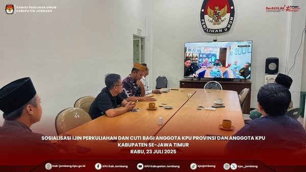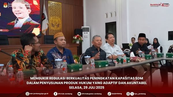 Jombang, kab-jombang.kpu.go.id - Komisi Pemilihan Umum Kabupaten Jombang (KPU Jombang) melaksanakan kegiatan Knowledge Sharing dalam rangka peningkatan kapasitas SDM dan Kelembagaan. Kegiatan yang terlaksaana di Gedung Pertemuan HKM KPU Jombang, pada Selasa (29/07/2025) tersebut dihadiri oleh Habib M. Rohan, Anggota KPU Provinsi Jawa Timur Divisi Hukum dan Pengawasan; Dafid Budianto, Ketua Bawaslu Jombang; seluruh Anggota dan Sekretariat KPU Jombang.