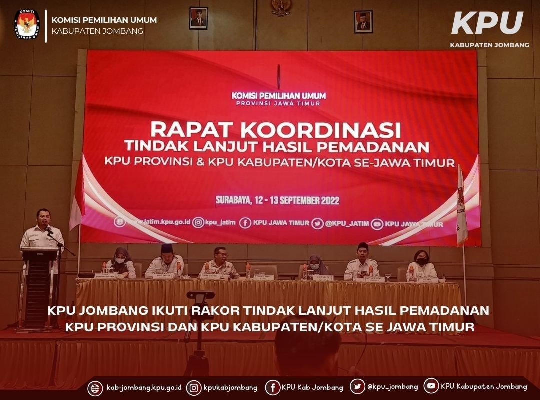 Turut hadir dalam peserta Komisi Pemilihan Umum Kabupaten Jombang menghadirkan Ketua KPU Athoillah, Divisi Perencanaan, Data dan Informasi Abd. Wadud Burahan Abadi, Divisi Hukum dan Pengawasan Ayatulloh Khumaini, Kasubbag Tekmas Dina Triasmadji, verifikator Sistem Informasi Politik (SIPOL) Febri Nila Wilujeng. (dt/humas)