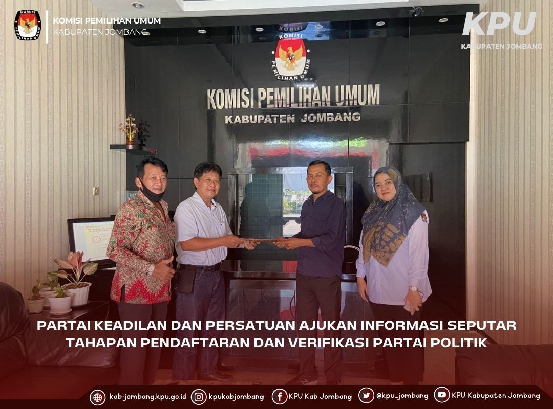 Jombang, kab-jombang.kpu.go.id – Senin (1/8/2022) Sekretaris DPC Partai Kebangkitan Nusantara (PKN) Kabupaten Jombang, datangi kantor Komisi Pemilihan Umum (KPU) Kabupaten Jombang. Mochamad Suhada Nasrulloh, Sekretaris PKN Jombang mendatangi kantor KPU Kabupaten Jombang untuk menanyakan terkait tahapan Pemilu Tahun 2024. "Saya sengaja datang kesini selain untuk silaturahmi, sekaligus untuk menanyakan terkait tahapan Pemilu Tahun 2024 serta menyerahkan fotocopy SK kepengurusan partai," tuturnya. Ia juga menjelaskan, bahwa silahturahmi kali ini selain menanyakan tahapan Pemilu Tahun 2024 juga sebagai salah satu langkah awal PKN dalam menyambut Pemilihan dan Pemilu di tahun 2024. "Sebagai salah satu Partai Politik yang ada di Indonesia, kami harus mempersiapkan sebaik mungkin untuk menyambut Pemilihan dan Pemilu. Sehingga dengan begitu, kami akan lebih mematangkan strategi yang tepat dalam Pemilihan dan Pemilu nantinya," imbuh Mochamad Suhada Nasrulloh. Dalam kesempatan tersebut, Syauqi Muhammad disambut baik oleh Anggota KPU Kabupaten Jombang Divisi Hukum dan Pengawasan, Ayatullah Khumaini dan Dina Triasmadji, MH., selaku Kasubbag Teknis dan Humas KPU Kabupaten Jombang.(dt/humas)