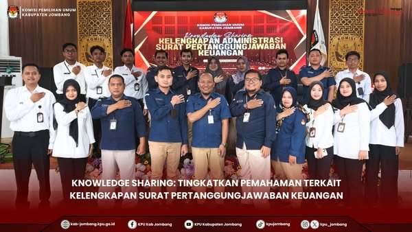 Jombang, kab-jombang.kpu.go.id - dalam rangka meningkatkan pemahaman dan ketertiban administrasi dalam pengelolaan keuangan, khususnya dalam penyusunan dan pelaporan Surat Pertanggungjawaban (SPJ), KPU Kabupaten Jombang melaksanakan kegiatan knowledge sharing bertajuk "Kelengkapan Administrasi Surat Pertanggungjawaban Keuangan" pada hari Selasa (08/07/2025) bertempat di Gedung Pertemuan HKM KPU Jombang.