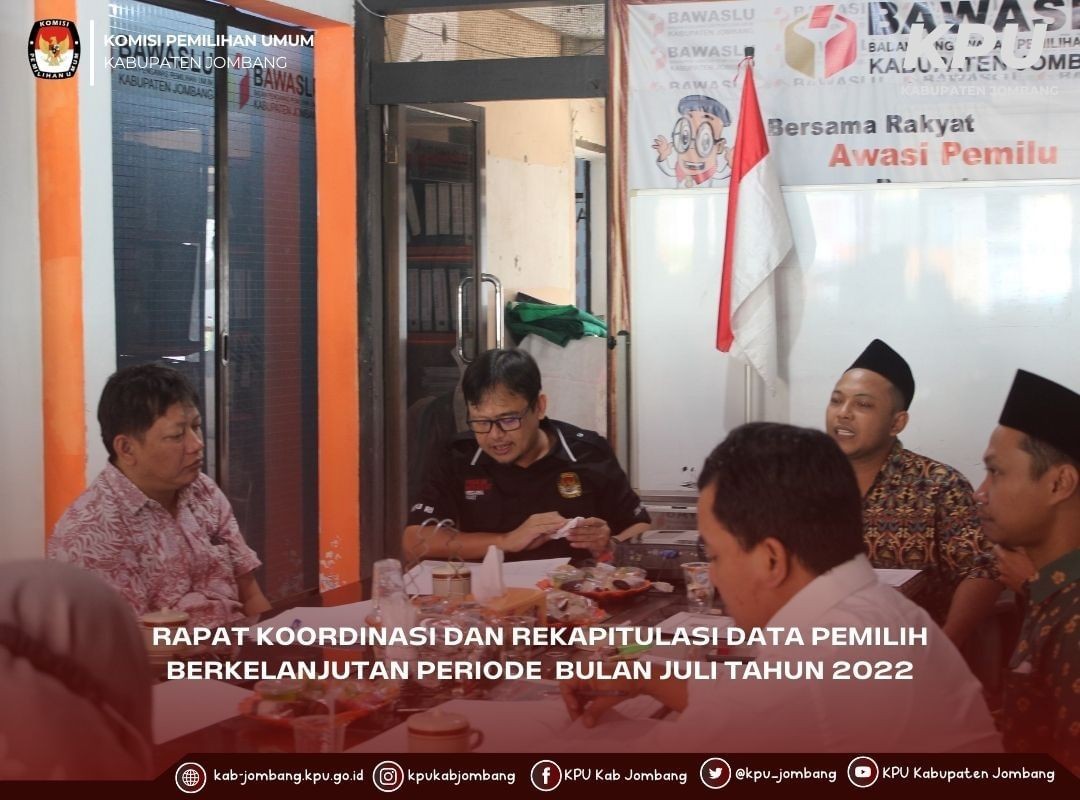 Turut hadir mewakili KPU Kabupaten Jombang, Divisi Teknis Penyelenggaraan As’ad Choiruddin, Divisi Perencanaan Data dan Informasi Abd. Wadud Burhan Abadi, Kasubag Teknis dan Hubmas Dina Triasmadji, serta operator SIPOL Nila Febri Wilujeng.