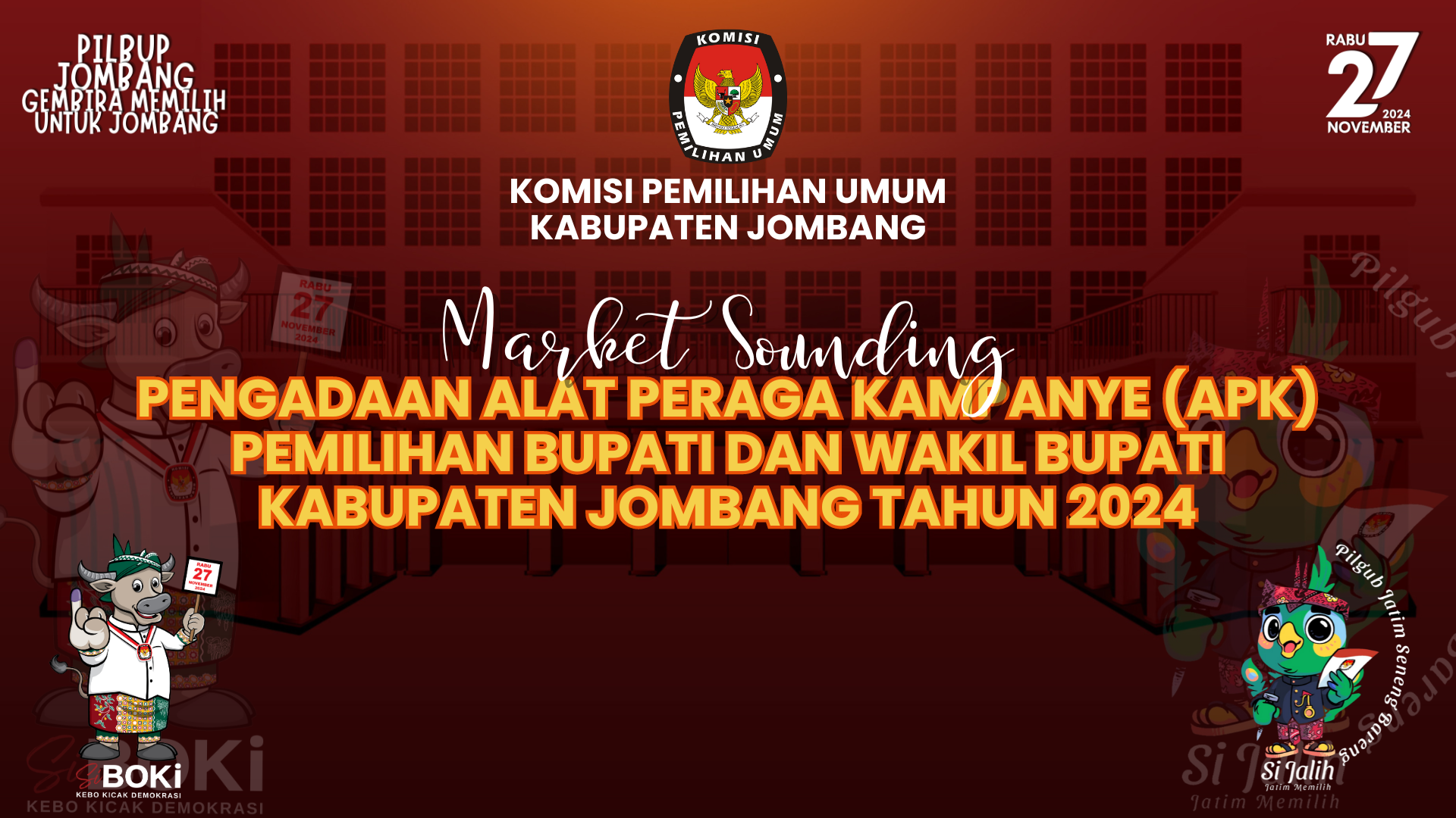 KPU Kabupaten Jombang mengundang para Pelaku Usaha dalam Acara "Market Sounding dalam rangka Pengadaan Alat Peraga Kampanye (APK) Pemilihan Bupati dan Wakil Bupati Kabupaten Jombang Tahun 2024", pada :