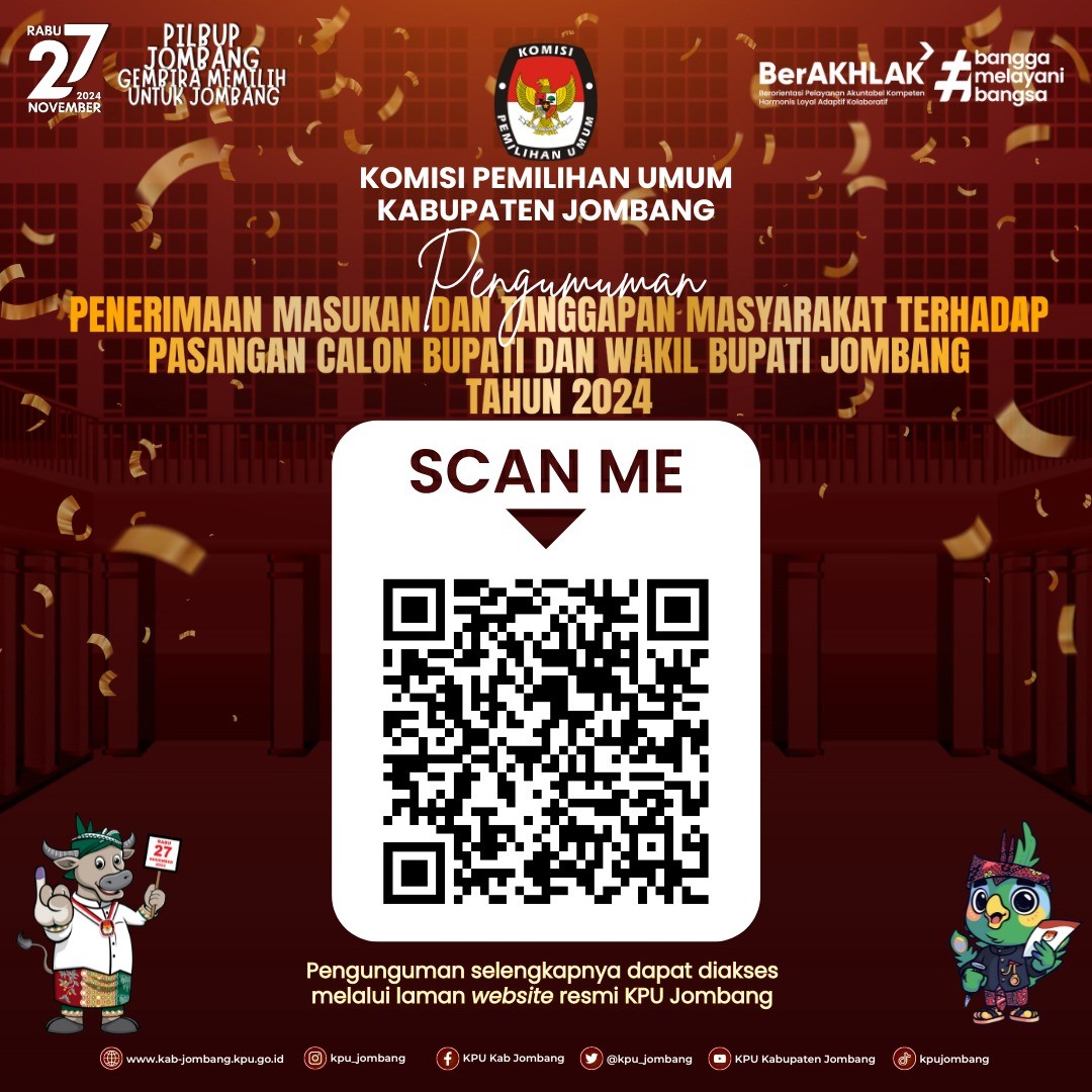 Berikut Kami Sampaikan Pengumuman Penerimaan Masukan Dan Tanggapan Masyarakat Terhadap Pasangan Calon Bupati Dan Wakil Bupati Jombang Tahun 2024