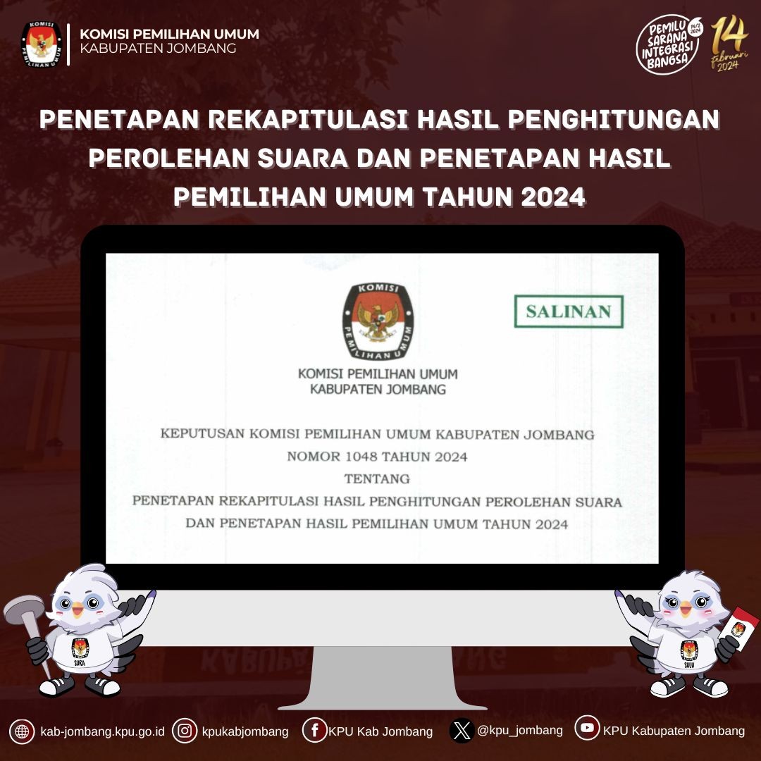 Hasil Penghitungan Perolehan Suara Pemilu Tahun 2024 Tingkat Kabupaten Jombang Minggu, 03 Maret 2024 10:00 1113 Hasil Penghitungan Perolehan Suara Pemilu Tahun 2024 Tingkat Kabupaten Jombang dapat diunduh melalui link Download di sini Baca Selengkapnya